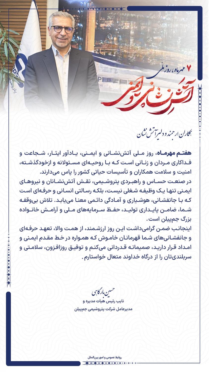 پیام مدیرعامل شرکت پتروشیمی جم پیلن به مناسبت روز آتش نشانی و ایمنی ۷ مهر ۱۴۰۴ نظرات بینندگان میانگین امتیاز کاربران: 0.0 (0 رای) 12345 برای نظر دادن ابتدا باید به سیستم وارد شوید. برای ورود به سیستم روی کلید زیر کلیک کنید. ورود